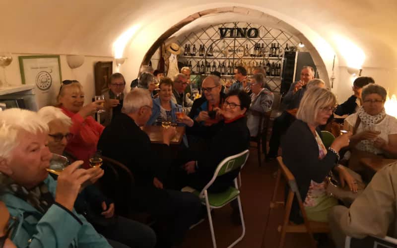 - Hier in Bosa kosten wir den Malvasia di Sardegna, eine sehr alte Weissweinsorte – süss und aromatisch – Cin-cin!