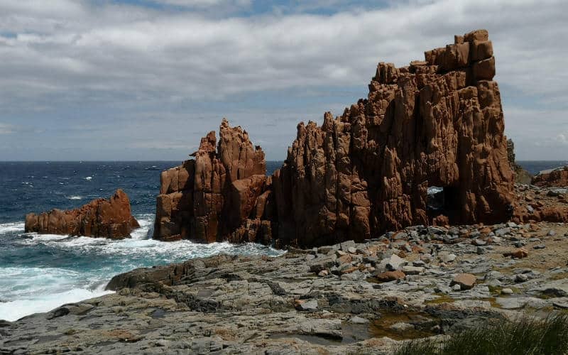 - und erfreuen uns kurze Zeit später in Albatrax an einer weiteren Naturschönheit: die roten Felsen am Meer.