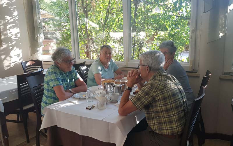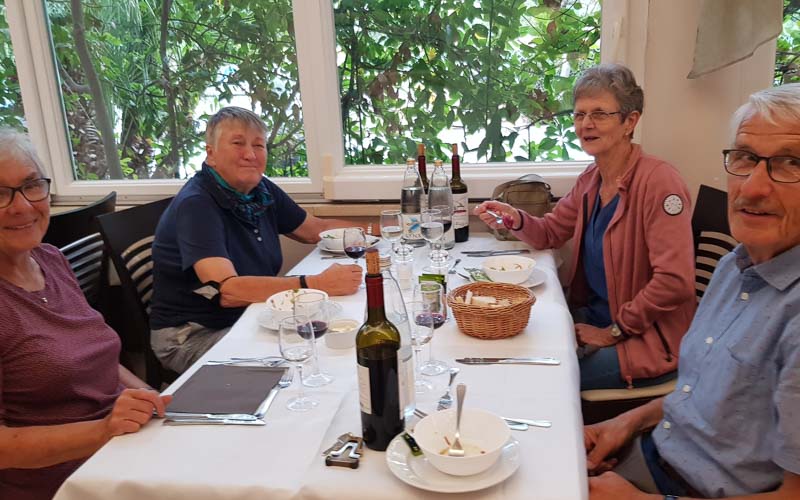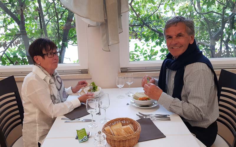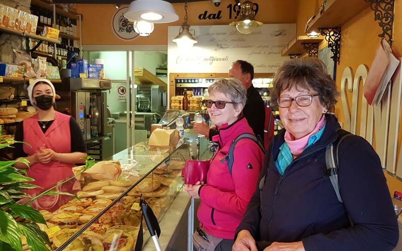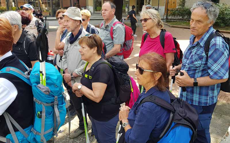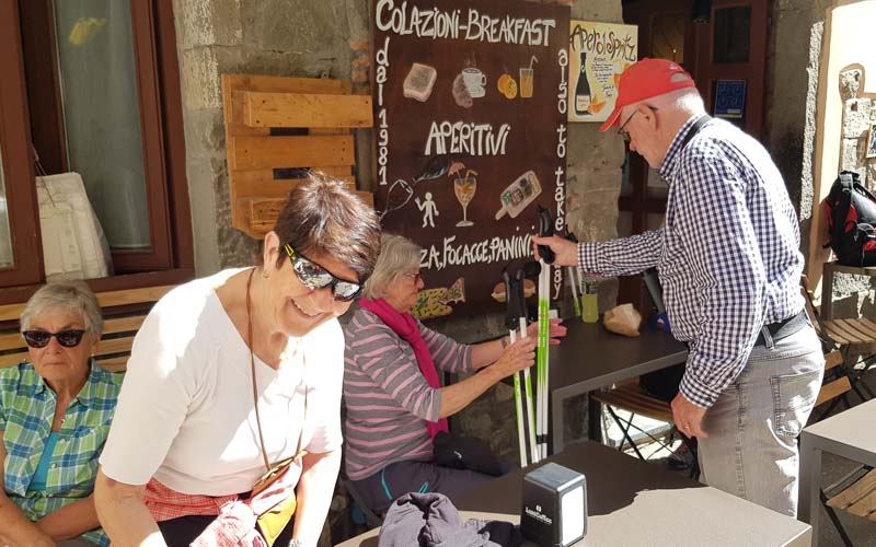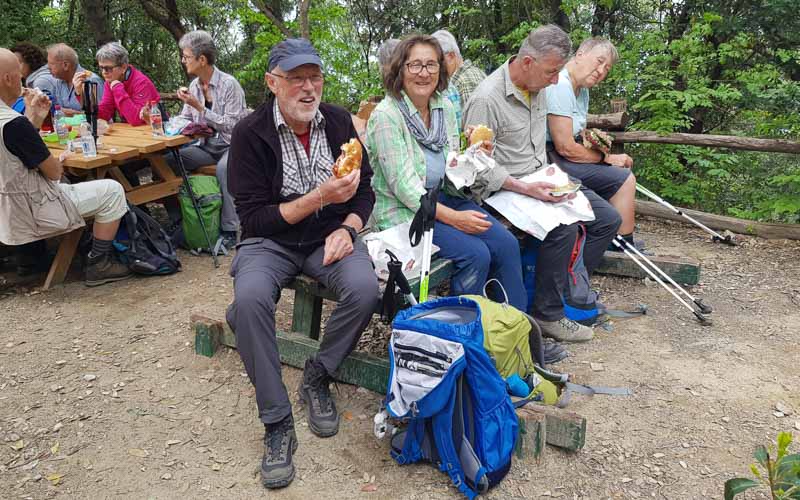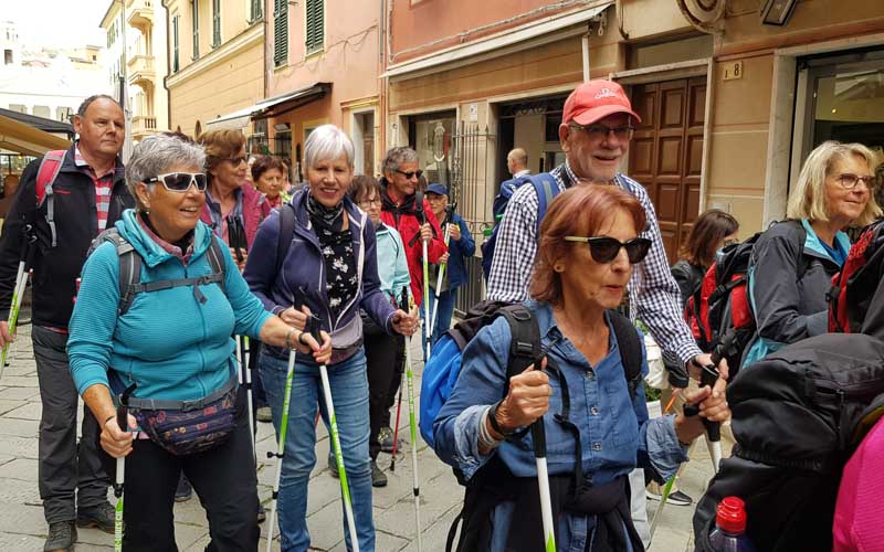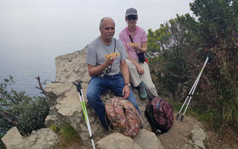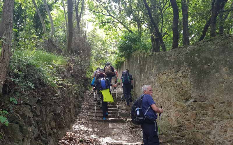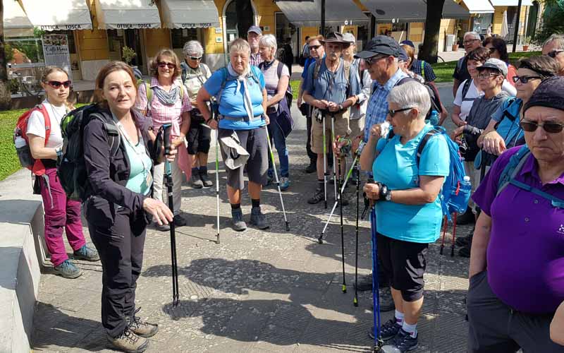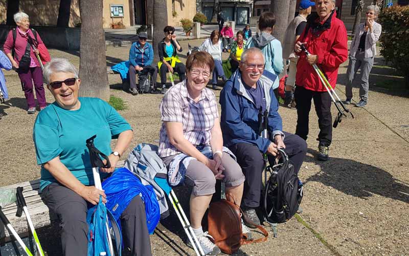 Gut ausgerüstet fahren wir nach Sestri Levante zum Ausgangsort für die erste Wanderung. Dort werden wir von Silvia und Leonira, unsere Wanderleiterinnen für die kommenden Tage, empfangen. Bevor wir losmarschieren, bummeln wir durch die malerische Altstadt, kaufen für das Picknick ein und geniessen noch schnell einen echten feinen italienischen Espresso. Auf Naturwegen geht’s zur Aussichtsplattform „Punta Manara“. Immer wieder wird fotografiert oder einfach nur genossen. Wie schön ist doch der Blick auf das Meer! Das Picknick beginnt ideal, wird dann jedoch vom immer stärker werdenden Regen frühzeitig unterbrochen. Jetzt wird zügig jedoch vorsichtig marschiert, der nasse Boden könnte rutschig sein. Dank der Wanderstöcke, ein Geschenk von Cartours für jeden Teilnehmer, kommen wir nicht aus dem Gleichgewicht. Bald erreichen wir Sestri Levante, wo wir von einem sehr heftigen Regenguss begrüsst werden. Die Sonne lässt allerdings nicht lange auf sich warten. Nach einem kurzweiligen Aufenthalt in diesem romantischen Städtchen fahren wir nach Hause in unsere „kleine Welt“ in Camaiore.