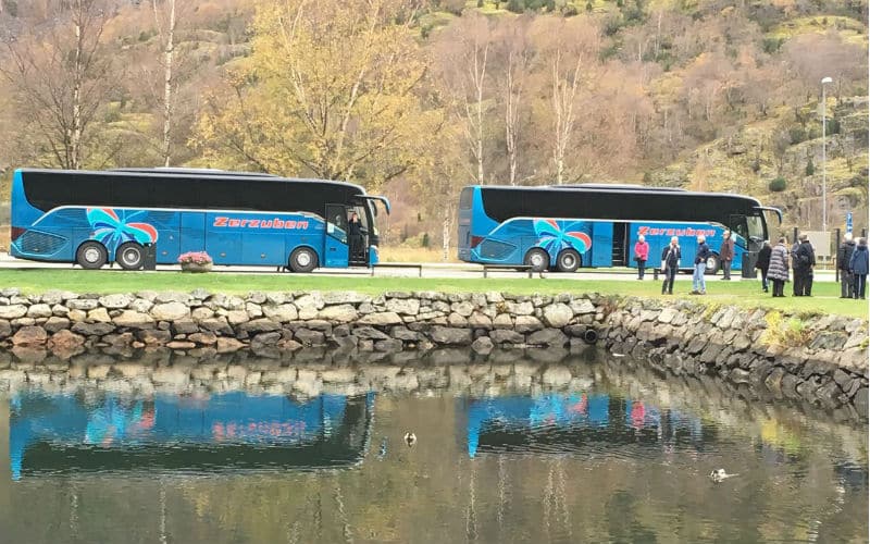 Am nächsten Tag erreichen wir Oslo bei traumhaften Wetter, was uns wegen der schlechten Prognosen doppelt erfreut. Der Tag führt uns heute durch die farbige Herbstpracht Norwegens. Romy, unsere so hervorragende und liebe Chauffeuse, fährt uns sicher über Serpentinen und durch enge Strassen! Vorbei an Drammen, das an der Mündung des lachsreichen Drammenselva liegt, erreichen wir zum Mittagshalt Kongsberg, das seine Existenz der Entdeckung einer Silbermine um 1623 verdankt. Weiter geht’s durch die herbstlich gefärbten Wälder, über die bis zu 1137m hoch gelegenen Strassen, zum längsten Strassentunnel der Welt. Der Laerdalstunnel wartet mit einer Länge von 24,5km Länge und einer ganz speziellen Innenbeleuchtung auf uns. Natürlich fotografieren wir fleissig und es werden ganz tolle Fotos. Am Sognefjord angekommen, erwartet uns unser Hotel mit dem Abendessen.
