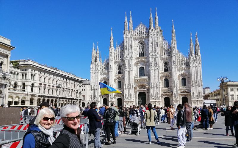 Die erste Stadt, welche wir anfahren, ist Mailand und wir landen inmitten einer unglaublich quirligen und lebendigen Grossstadt. Wir bahnen uns einen Weg durch die Menschenmenge bis zum Mailänder Dom. Danach verteilen sich die Gäste. Die einen gehen zur Oper La Scala, die anderen shoppen und die nächsten gönnen sich ein Gelato. Auf dem Rückweg zum Car machen die meisten noch einen kurzen Abstecher ins Castello Sforzesco, welches von imposanten Mauern umgeben ist.