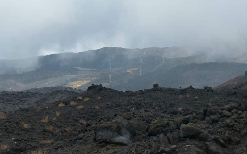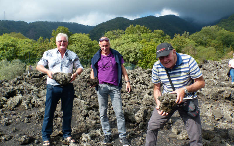 Nicht vergessen werden darf natürlich der Ätna, welcher alle paar Jahre ausbricht. Auf engen Kurven bringt uns Arun von Meereshöhe hinauf in eine Landschaft von Vulkangestein. Leider finden wir nicht die Zeit, mit der Seilbahn bis zum Kraterrand hochzufahren. Der einstündige Halt auf 2000 m über Meer hinterlässt bei uns dennoch bleibende Eindrücke von der Wucht der über 1‘000 Grad heissen Lavaströme, die alles zerstören, was sich ihnen in den Weg stellt. Nur spielt das Wetter heute nicht ganz mit, Nebelschwaden verdecken die Sicht zur Küste.