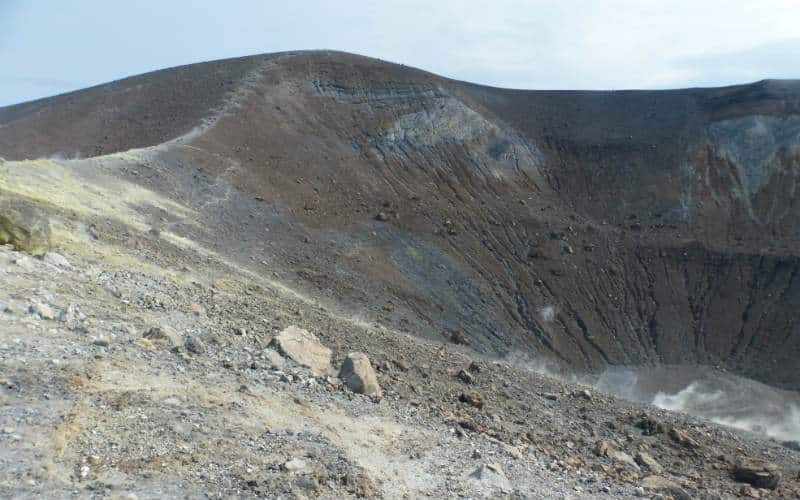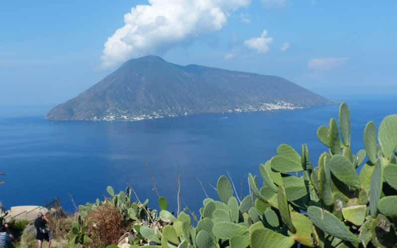 Ganz anders auf den äolischen Inseln Lipari und Vulcano. So stinkt es auf Vulcano aus den rauchenden Löchern nach Schwefel. Als Einziger der Gruppe besteige ich auf derselben Insel den Vulkanrand (Aufstieg ca. eine Stunde). Von dort habe ich eine Sicht über beinahe alle sieben äolischen Inseln und dem stahlblauen Meer. Weit entfernt entdecke ich sogar den Stromboli, der insbesondere während den Nachtstunden mit seinen Eruptionen auffällt.