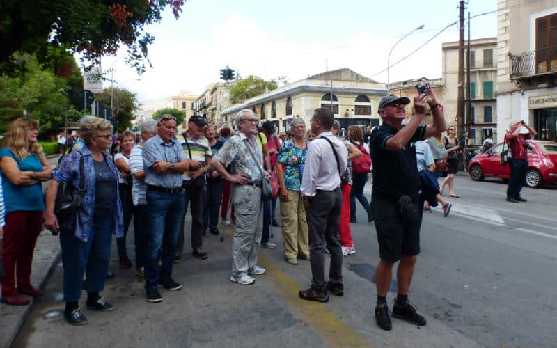 „Iistige – Usstige“ (Einsteigen – Aussteigen), diesen Mundartbegriff unseres sizilianischen Reiseleiters Alberto Amato ist mir bei der Niederschrift dieser Zeilen immer noch in den Ohren. Aber auch die Persönlichkeit von Alberto bleibt mir in bester Erinnerung. Ohne uns zu überfordern, hat uns Alberto mit seinem umfassenden Wissen während sieben Tagen auf eine einfache Art die verschiedenen Kulturen Siziliens der letzten 3‘500 Jahre in kleinen Häppchen näher gebracht. Ein Ohrenschmaus, seinen mit Humor gespickten Worten zuzuhören und Neues zu lernen. So muss man bei ihm kein Studium absolviert haben, um die besuchten Kulturstätten in den Grundzügen zu verstehen.