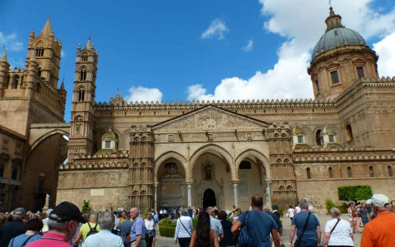 So finden sich zum Beispiel in den Kathedralen von Monreale (Palermo) und Cefalu christliche, byzantinische und arabische Elemente. Auch Kirchenmuffel unserer Gruppe sind davon begeistert.