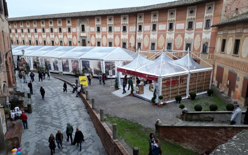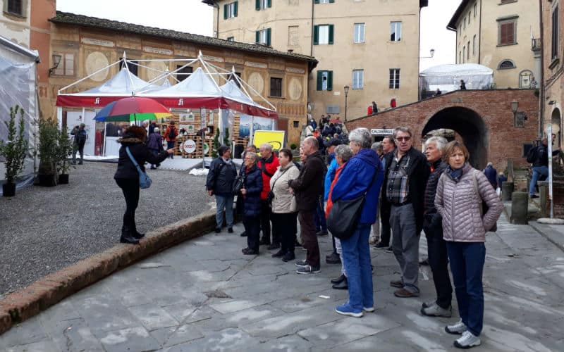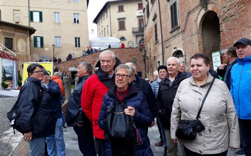 Am 3. Reisetag weckte uns – wie herrlich! – die Morgensonne. Wir freuten uns auf eine schöne Fahrt zum legendären Trüffelmarkt von San Miniato. Der aussergewöhnliche Trüffelmarkt konnte von den Gästen entdeckt, erforscht und genossen werden. Was für ein Angebot, nicht nur an Trüffeln, sondern an Esswaren, Getränken und sonstigem! Eine Augenweide vom Feinsten, was sich auch landschaftlich und architektonisch von der Kulisse sagen lässt, in der der Markt stattfand. Am späteren Nachmittag ging es dann weiter in das hübsche Dorf Lari, wo wir in einer Manufaktur in die Geheimnisse der familiären Pasta-Herstellung eingeweiht wurden und sowohl vorher als nachher noch die Gelegenheit hatten, einen feinen Kirschlikör zu kosten und handgemachte Teigwaren einzukaufen. Für das gute Abendessen im Hotel hatten wir heute noch Platz.