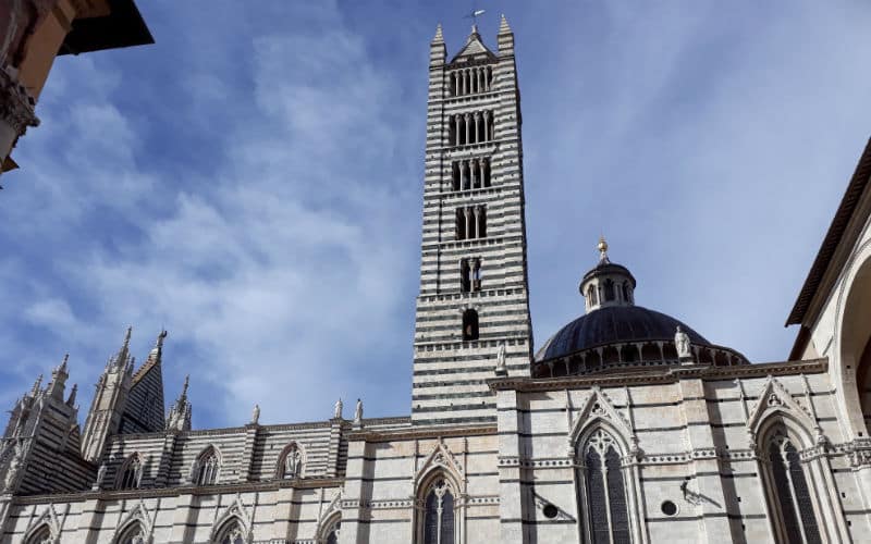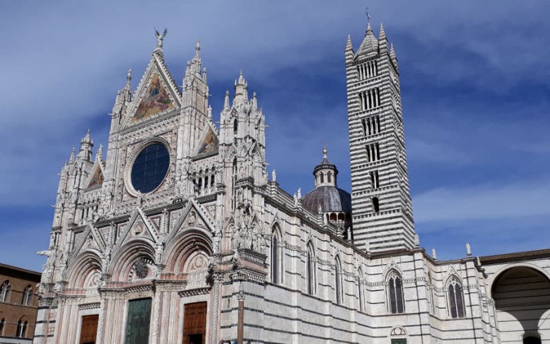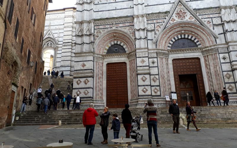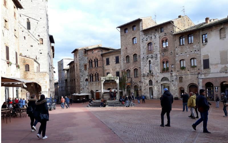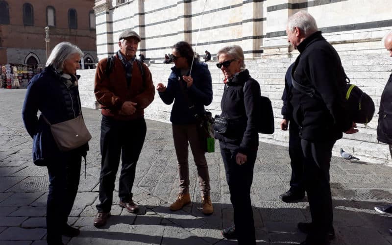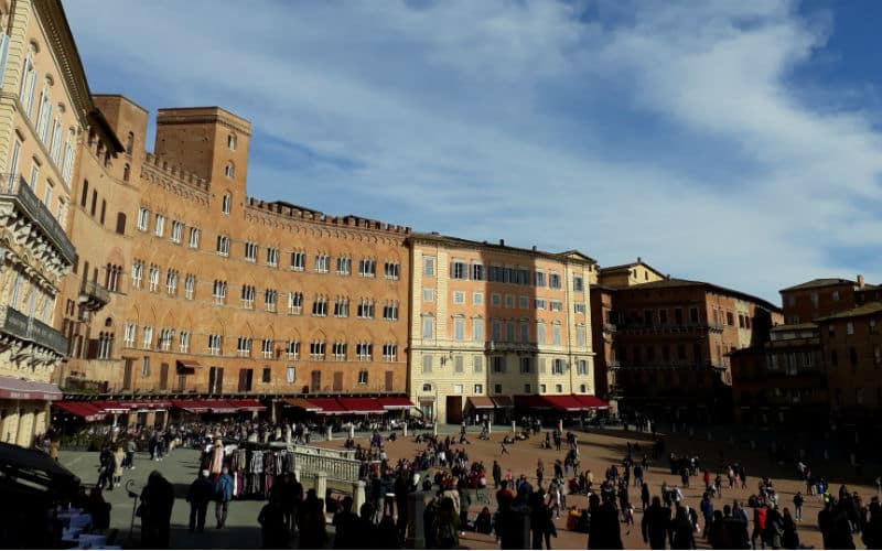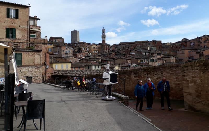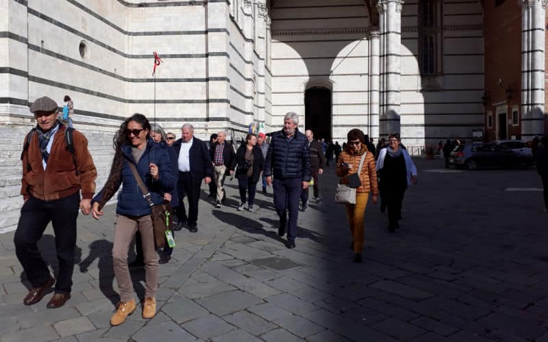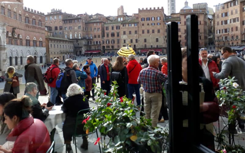 4. Reisetag: Das Wetter am Morgen: Nebel. Täglich eine Überraschung. Als ich den Nachtportier darauf ansprach, meinte er schmunzelnd, morgen stehe noch Schnee auf dem Programm. Er sollte recht behalten. Doch noch war Sonntag und ein ganz besonderer Ausflug war geplant: Der Besuch der wunderschönen toskanischen Stadt Siena und der Besuch des mittelalterlichen San Gimignano mit seinen „Geschlechtertürmen“, das ihm den Beinamen Manhattan der Toskana eingebracht hatte. Bereits am Vorabend wurden wir informiert, dass ein Teil der Autobahn wegen Wildschweinen und ihrer Rückführung in die Natur durch die Polizei für einige Zeit gesperrt sein würde. Unter diesen Voraussetzungen wurde die Abfahrt vorverlegt. Belohnt wurden wir dann mit einer traumhaften Fahrt über Land, bevor wir viele Kilometer später die Autobahn wieder benutzen konnten. Der Nebel hatte sich zwischenzeitlich gelichtet und Siena empfing uns mit Sonne. Unterwegs hatte uns eine kompetente und charmante italienische Reiseleiterin Wissenswertes und Interessantes vermittelt. In Siena selbst hatten wir eine zusätzliche Dame, die uns in die Geheimnisse der Stadt einführte, bevor auf der berühmten Piazza del Campo in einem guten Lokal zu einem Mittagessen nach eigenem Gusto geladen wurde. Anschliessend ging es zurück zum Bus und weiter ins legendäre und filmreife San Gimignano, wo wir etwas freie Zeit hatten, bevor wir die Heimreise auf der nun wieder freien Autobahn antraten.