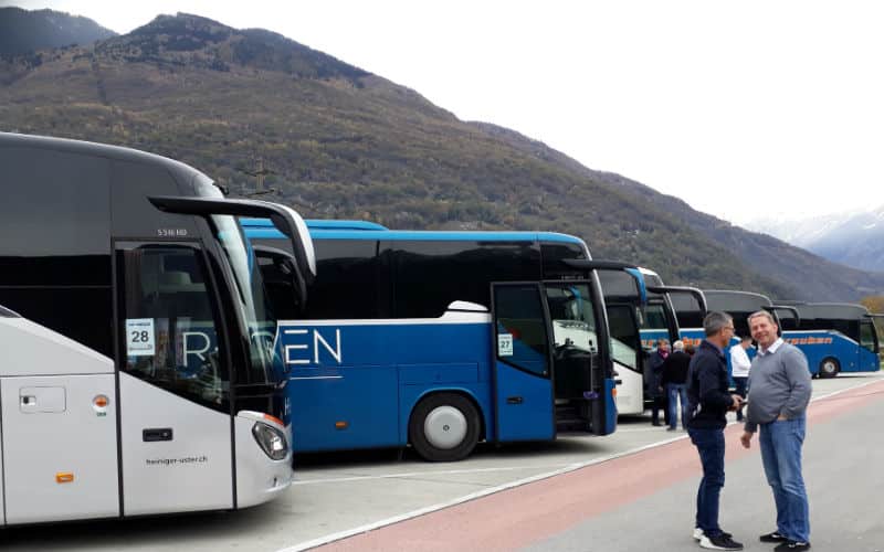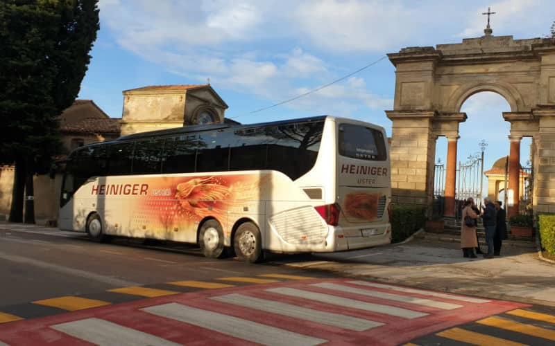 Am Donnerstagmorgen um 7.30 Uhr ging es mit den ersten Gästen bei schönstem Schweizer Wetter  los in Winterthur. Via Pfäffikon SZ fuhren wir nach Sargans zu Kafi und Gipfeli im Hotel Post und anschliessend zum Bahnhof Sargans, wo weitere Gäste auf uns warteten und jene Reisenden, die der Zubringer-Bus aus dem Raum St. Gallen gebracht hatte. Damit waren wir vollzählig und konnten die Reise „offiziell“ beginnen. Auf der A13 ging es nach Süden, doch bereits auf der San-Bernardino-Route eine erste Überraschung: Der Chauffeur musste zweimal anhalten und Getränke nachladen, weil die Gruppe „Durst“ (wie eine Dame uns nannte), ihrem Namen alle Ehre machte. Das sorgte für gute Stimmung und weiter gings in Richtung Italien, unterbrochen durch das Mittagessen auf der Autobahnraststätte bei Bellinzona. In den engen, von Bäumen und Autos gesäumten Strassen bewies unser Chauffeur sein fahrerisches Können, vor allem als er in Zentimeterarbeit mithilfe einiger Gäste den Bus zwischen all den Kreuzungen und Einbahnstrassen wieder so stellen musste, dass wir geradeaus fahren konnten. Per Telefon beorderte ich dann jemanden von der Rezeption zu unserem Fahrzeug und bestand darauf, bis zur am nächsten am Hotel gelegenen Ausstiegsmöglichkeit gelotst zu werden. Den Rest machten wir zu Fuss und genossen schon bald darauf ein feines Abendessen in unserem hübschen und gemütlichen Hotel.