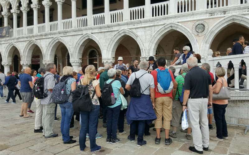 Der 3.Tag beginnt mit Bewölkung und im Frühstücksraum hört man schon von weitem das Lachen unserer Gäste. Alle haben gut geschlafen und sind auch gut gelaunt, voller Tatendrang für den heutigen Ausflug nach Venedig. Wir fahren nach Punta Sabbioni zur Bootsanlegestelle und uns erwartet ein lachender „Capitano Sante“- der Chef der die Boote von Il Dogde di Venezia für unsere Gruppen einteilt. Schön ihn immer wieder hier an den Anlegern zu sehen. Wir sind auf dem Schiff Richtung Venedig unterwegs durch die schöne Lagune bei Sonnenschein. Auf dem Weg zum Markusplatz sind wir nicht die einzigen Touristen, alle wollen Venedig erleben. Unsere lokale Reiseleiterin Marita wartet bereits auf uns und es kann losgehen zur Stadtführung. Am Ende der Stadtführung in der Nähe der Rialto-Brücke ( diese wurde letztes Jahr aufwendig renoviert) begann es dann doch zu regnen, aber so richtig. Ca. 1 Stunde öffnete der Himmel seine Schleusen… Nun haben wir es doch erlebt: Venedig im Regen. Aber die Sonne lässt sich wieder blicken. Auf dem Markusplatz gibt es auf einmal Hochwasser. An etwa 100 Tagen im Jahr ist Hochwasser in der Stadt Venedig die aus 117 Inseln besteht. Der Nachmittag geht schnell vorbei und es geht mit dem Schiff zurück nach Punta Sabbioni zum Bus. Unsere Gäste sind sich einig, Venedig war sehr spannend und es werden schon fleißig Pläne geschmiedet für den morgigen Nachmittagsaufenthalt in der Lagunenstadt. Zurück im Hotel ist leider kein Badewetter, es ist kühl geworden. Aber vielleicht ja morgen, die Wetteraussichten sind viel versprechend.
