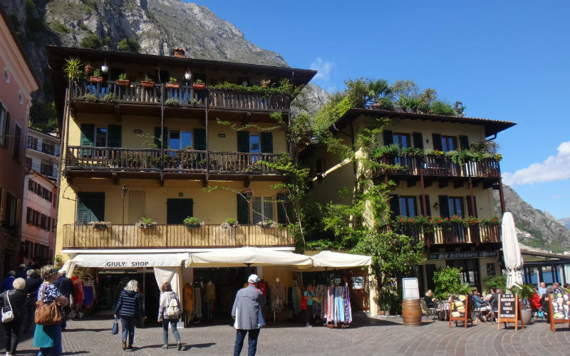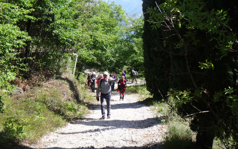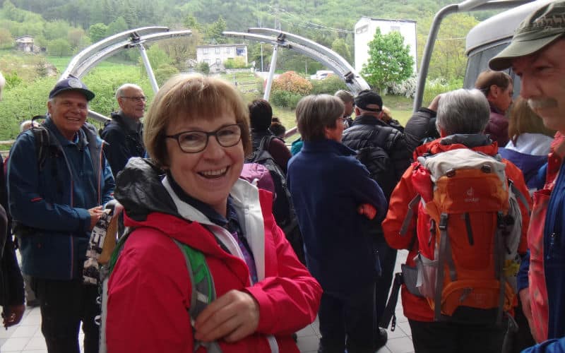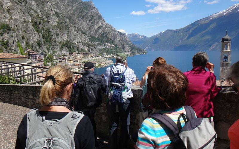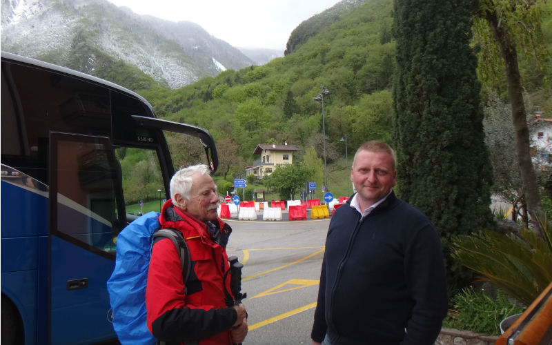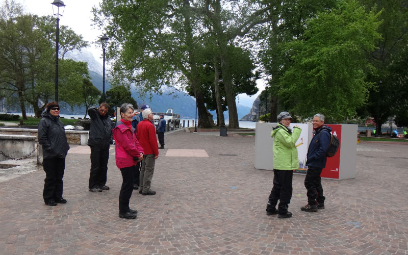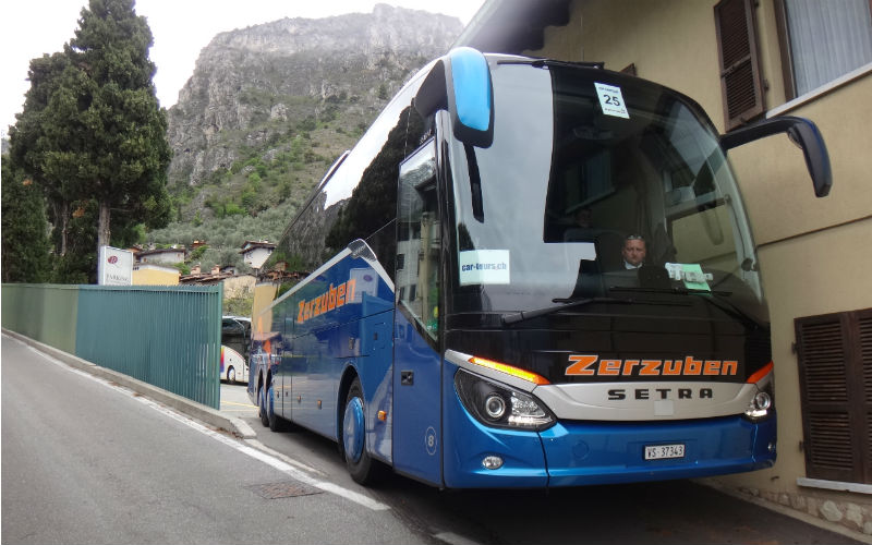 Die Wandervögel von car-tours erkenne ich schon von weitem, nämlich ausgerüstet mit Stöcken, Hüten und Rucksack warten sie auf den Bus. Bereits auf der Hinfahrt ist die Stimmung ausgelassen und die Vorfreude auf die Wandertage am Gardasee ist gross. Vor allem im vorderen Teil des Busses wird viel und laut gelacht. Da wir zeitlich gut unterwegs sind, nutzen wir die Gelegenheit und fahren dem Gardasee entlang und geniessen die Gegend und die schönen Dörfer. Beim Hotel in Limone kann Daniel, unser Fahrer, sein Können zeigen und den Bus durch die enge Einfahrt auf den Parkplatz manövrieren.