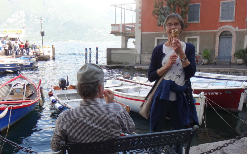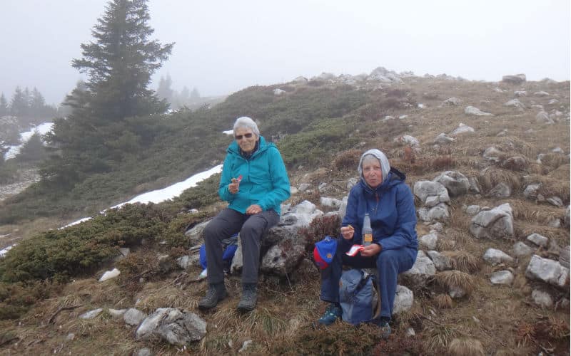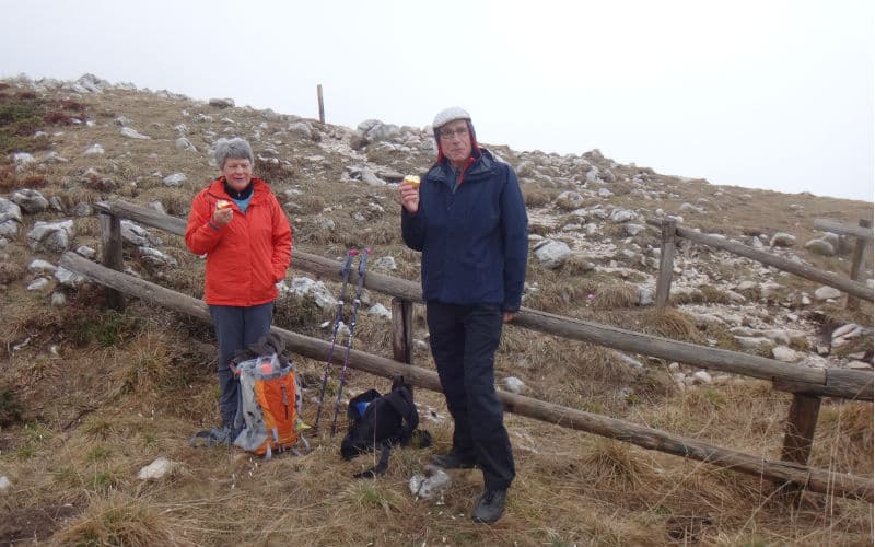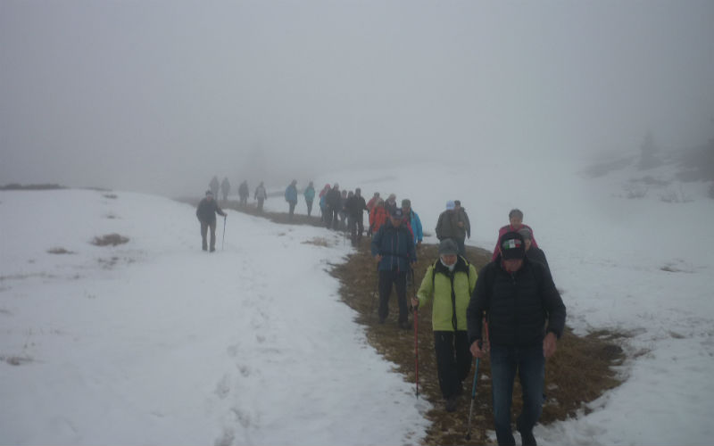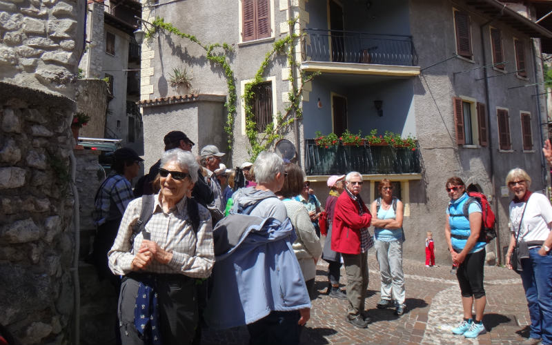Das Ziel unserer ersten Wanderung ist der Monte Baldo. Mit der Seilbahn fahren wir zuerst in die Mittelstation und von dort mit einer Drehkabine auf 1760 m hoch. Wir sehen schon von unten, dass unser Ziel in den Wolken liegt. Aber oben angelangt, geben uns die Wolken immerhin einige Male die Sicht auf das Panorama frei. Die Wanderung im Nebel hat aber etwas für sich, mystisch und ruhig ist es. Die Wiesen sind mit Blumen übersät, welche natürlich die Blüten halb geschlossen haben bei diesem Wetter. Wir stellen uns vor, wie schön es wohl wäre, wenn alle Blüten offen sind… Erst als wir wieder zurück zum Ausgangspunkt gehen, bemerken wir, wie steil der Weg vorher nach oben führte. Obwohl es neblig ist, meint es der Wettergott doch gut mit uns, denn es regnet nicht, obwohl die Wetterprognose sehr schlecht war. Als wir dann hören, dass es in der Schweiz schneit, sind wir wieder zufrieden. Wieder unten in Malcesine bleibt noch freie Zeit zum Mittagessen und um das hübsche Dörfchen noch selber zu erkunden. In Malcesine ist es schon lange sonnig und da darf natürlich ein Gelato nicht fehlen. Nach dem Treffpunkt um 15.15h (und nicht um 13.15h…)))!!!) runden wir den Tag mit einer Schifffahrt von Malcesine nach Limone ab. Viele nützen die Gelegenheit und verweilen noch in Limone bevor sie zum Hotel zurückkommen.