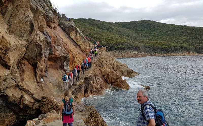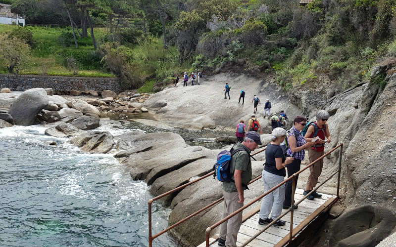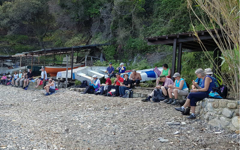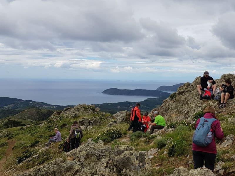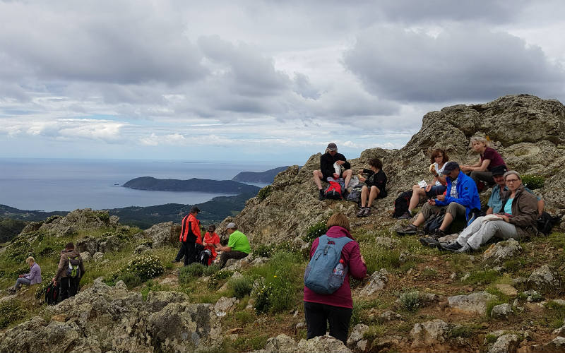 Unsere Wandergruppe sitzt in der Sonne und möchte irgendwie gar nicht zum Bus. Ist doch Elba eine wunderschöne Insel.