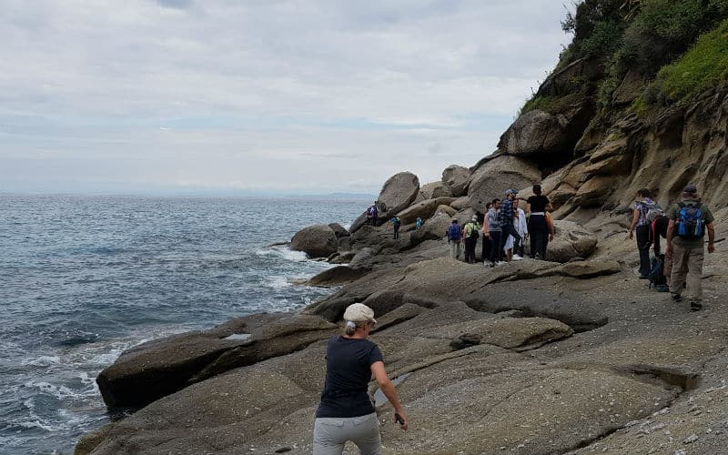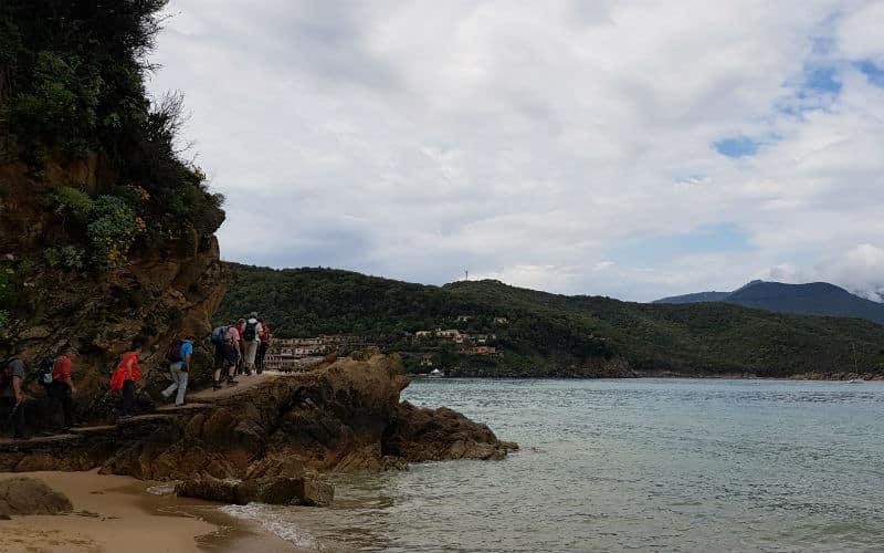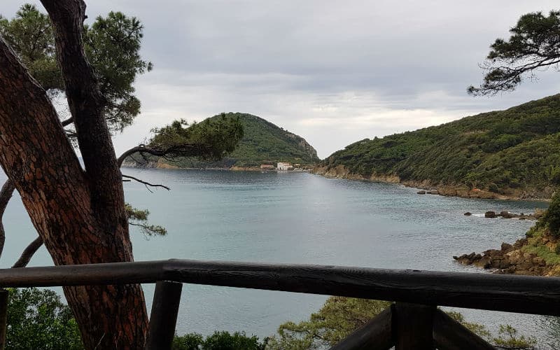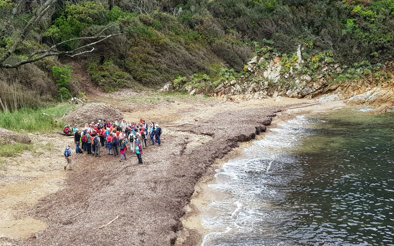 Wir fahren nach Viticcio. Der Ort ist bekannt durch seine schönen Strände und ist nur knapp 6 km von Porteferraio entfernt. Wir steigen dort in unseren Wanderweg ein. Dieser führt uns an den Stränden entlang, durch den Wald bergauf und bergab. Es ist heute sehr hohe Luftfeuchtigkeit nach dem Regen und wir kommen schnell ins schwitzen. Die Ausblicke jedoch sind fantastisch. Immer wieder gibt es einen kurzen Stopp und Marlies und Guilia erzählen uns so viel über die wunderschöne Natur Elbas. Das zum Bespiel auch hier die Palmen alle absterben, weil sie vom Palmrüsselkäfer befallen sind. Marlies macht uns immer mehr bewusst, wie sehr wir die Natur brauchen und sie uns.