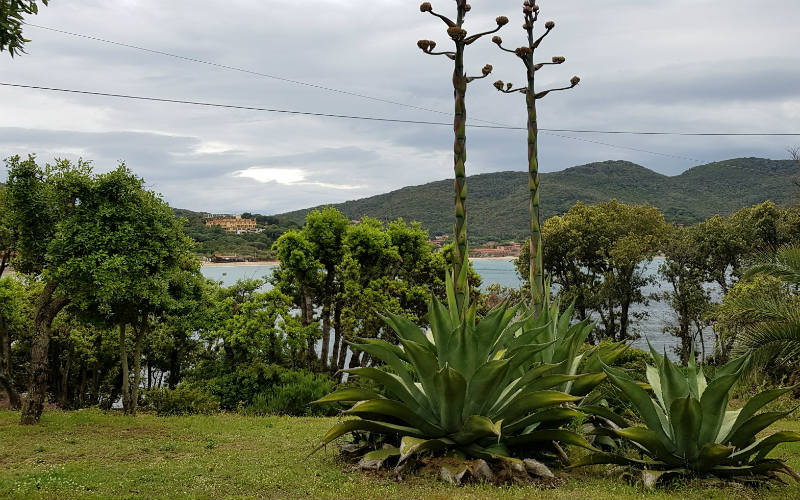 Nachdenklich zieht die Wandergruppe weiter immer das kristallklare Meer im Blick. Procchio ist unser Ziel. Auch dort gibt es einen sehr schönen Strand, noch ohne Badegäste weil es zu kalt ist. Procchio besitzt nicht nur einen Strand sondern auch einen Park in dem viele Veranstaltungen und Märkte stattfinden. Und dann passiert es… wir sitzen in den Restaurants verteilt… es fängt an zu regnen-es schüttet geradezu. Welch Glück haben wir gehabt, denn wir wanderten im trockenen. Michi fährt die etwas müde Mannschaft ins Hotel wo Zeit bleibt zum relaxen, Apero oder einen Besuch bei der Gärtnerei. Ja diese Gärtnerei lässt unsere Herzen höher schlagen und der ein oder andere Topf steht am Abend auf dem Balkon unserer Hotelzimmer. Weinreben, Olivenbäumchen, Kapernbäumchen und der wunderschöne Perückenbaum…
