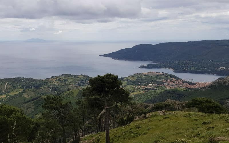 Wir sind „Gipfelstürmer“ und haben den schönsten Ausblick auf Porto Azzuro und auf Portoferraio, praktisch über die ganze östliche Insel. Was haben wir für ein Glück-so schön. Die Anstrengungen haben sich gelohnt.